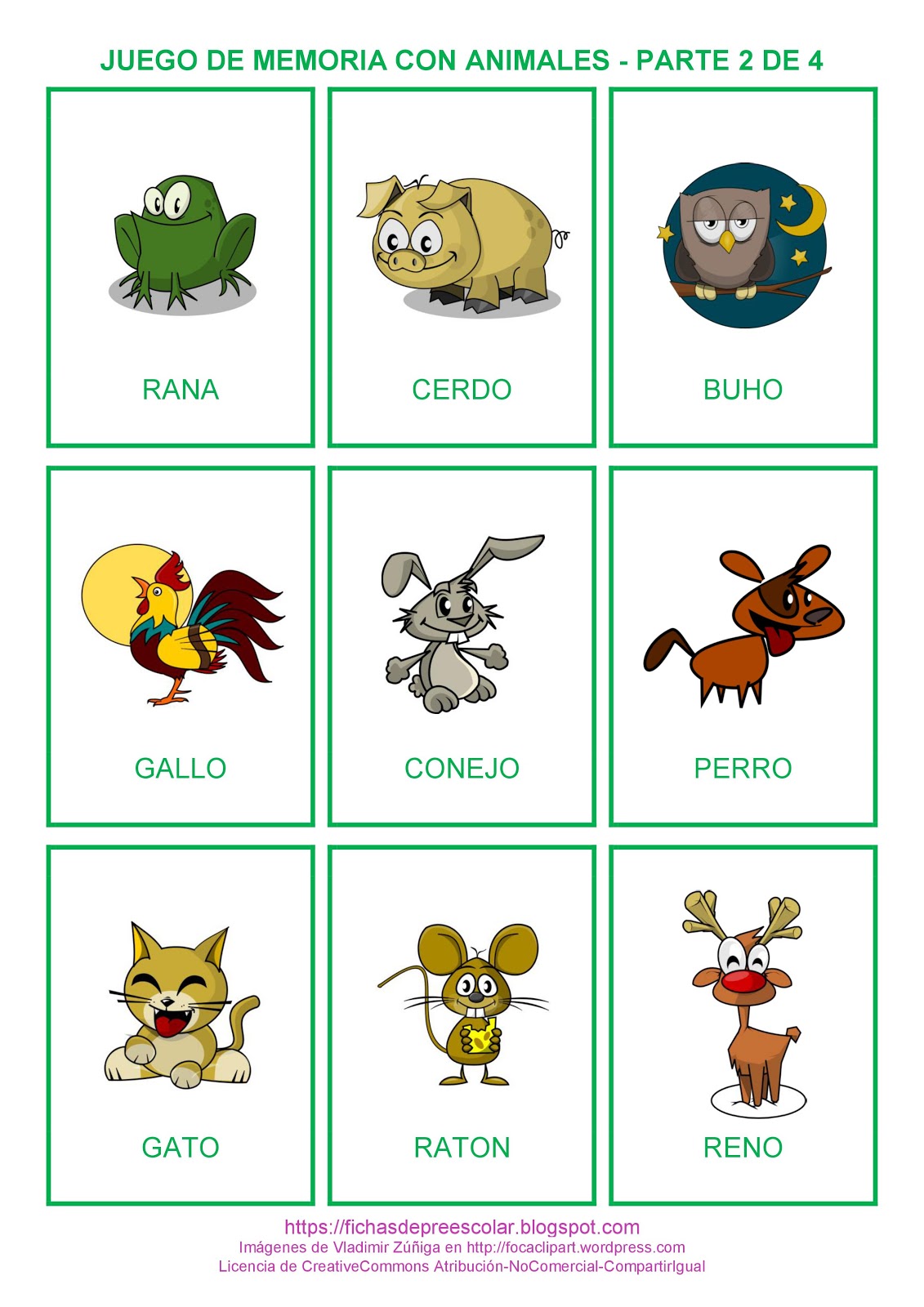 Fichas De Educacion Preescolar Juego De Memoria De Animales A