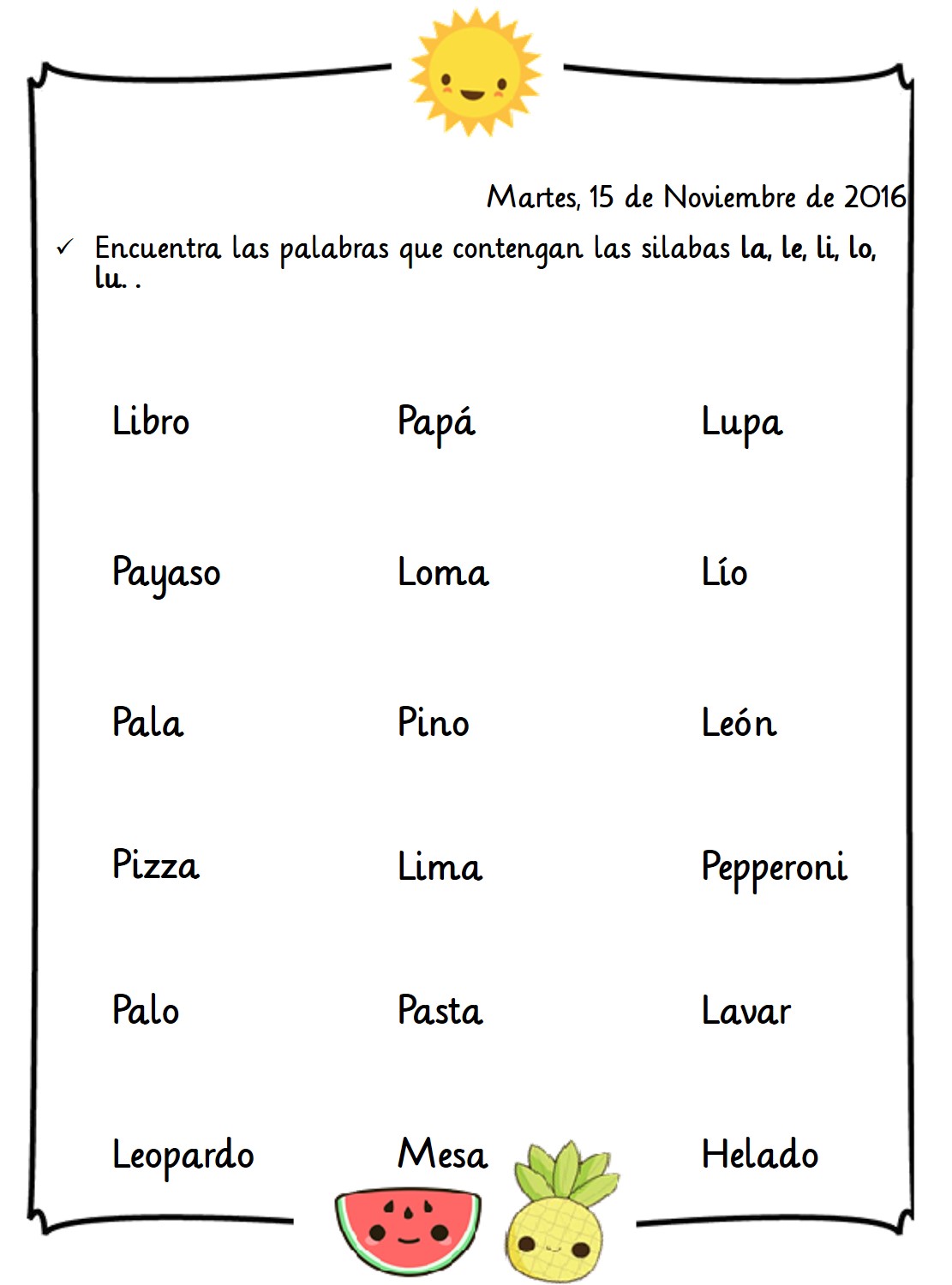 Resultado De Imagen De Palabras Con La Le Li Lo Lu Para Ninos